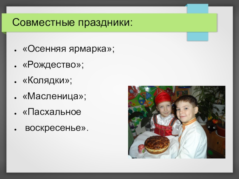 Слайд 16Совместные праздники: