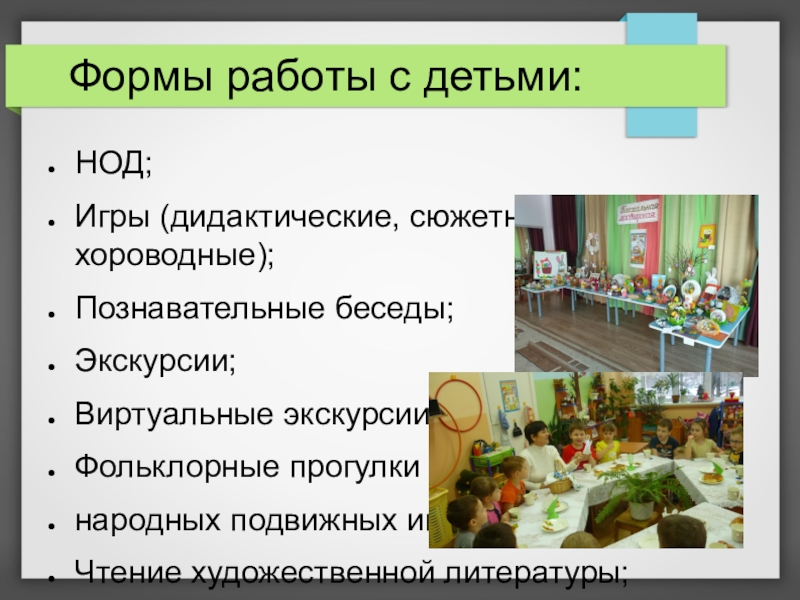 Слайд 11Формы работы с детьми: