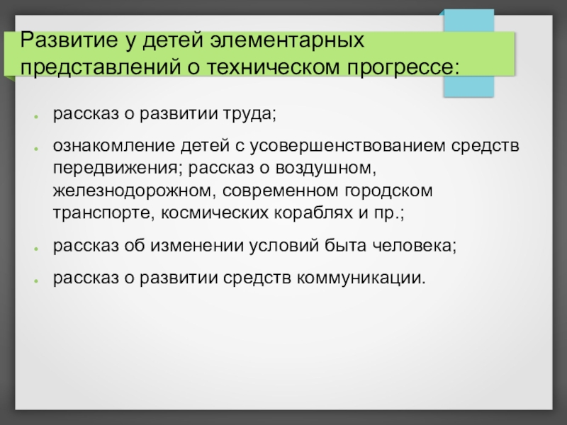 развитие у детей представлений о техническом прогрессе.