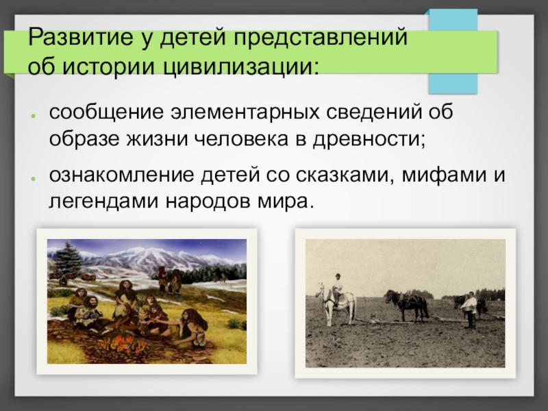 Слайд 7Развитие у детей представлений об истории цивилизации:
