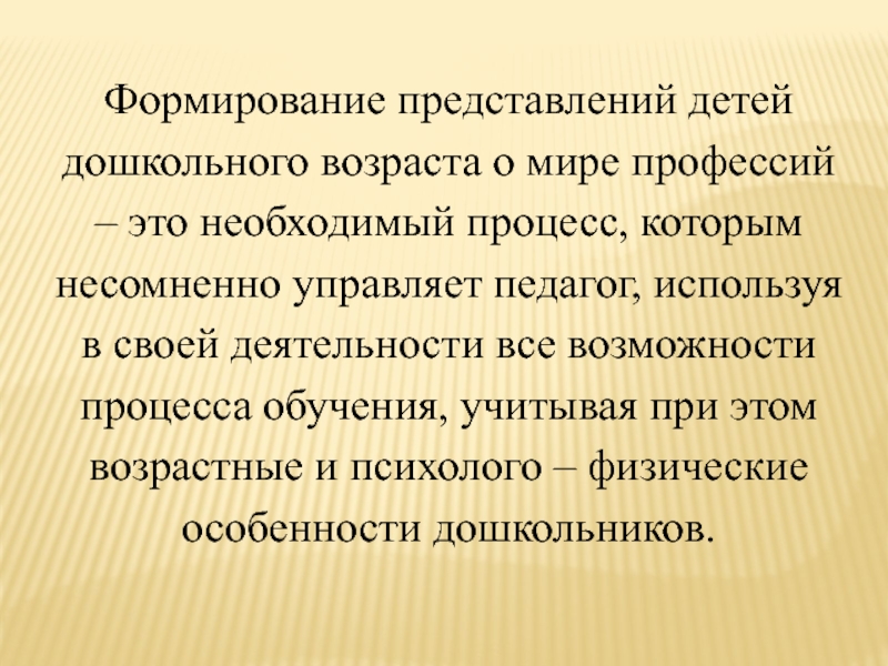 процесс, которым несомненно управляет педагог, используя в своей деятельности все возможности процесса обучения, учитывая при этом возрастные и психолого – физические особенности дошкольников.