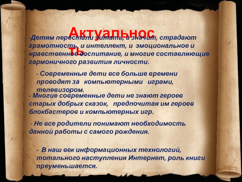 - Многие современные дети не знают героев старых добрых сказок, предпочитая им героев блокбастеров и компьютерных игр.