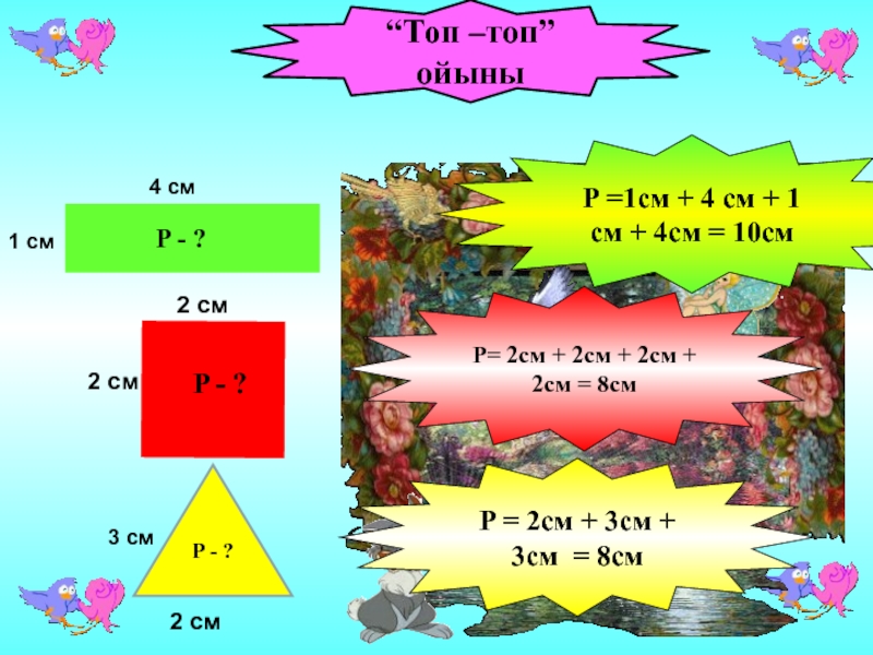 P =1см + 4 см + 1 см + 4см = 10см