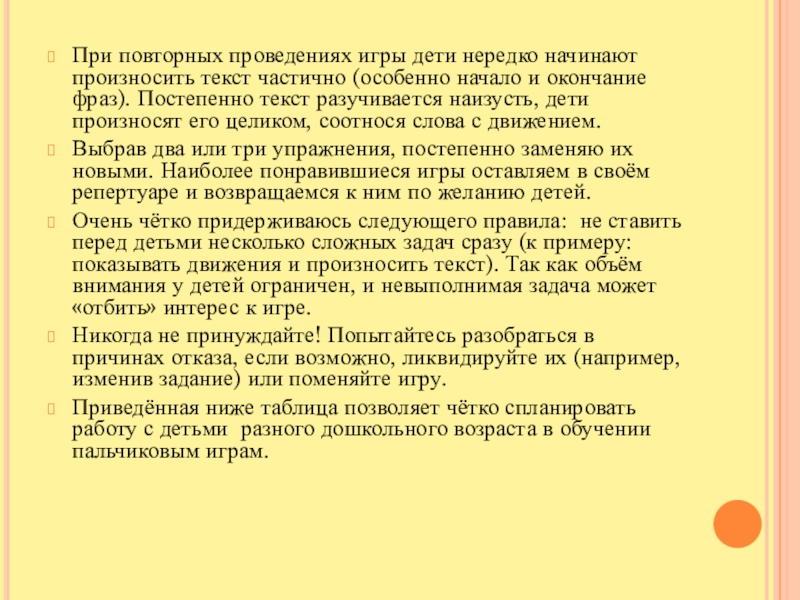 Слайд 11При повторных проведениях игры дети нередко начинают произносить текст частично (особенно