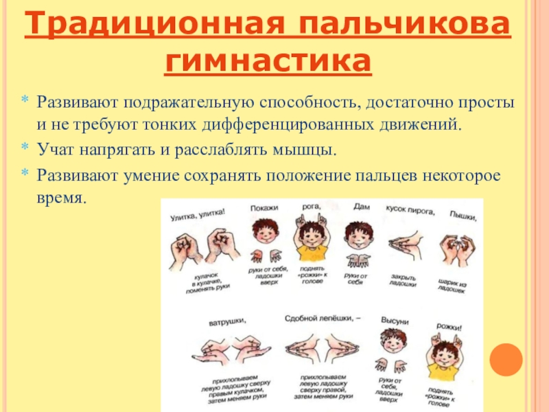Слайд 9Традиционная пальчикова гимнастика