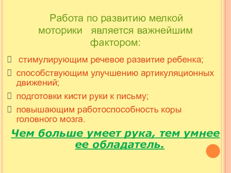 Работа по развитию мелкой моторики является важнейшим фактором: