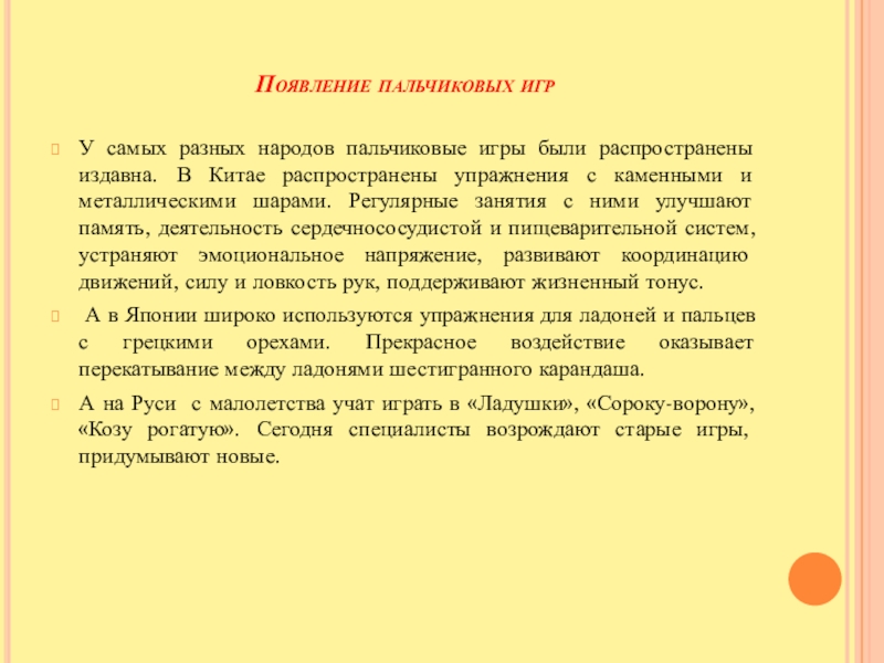 Слайд 6Появление пальчиковых игр