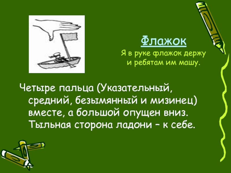 а) Пальцы – в кулачок, выдвинуть указательный и средний палец и развести их в стороны;