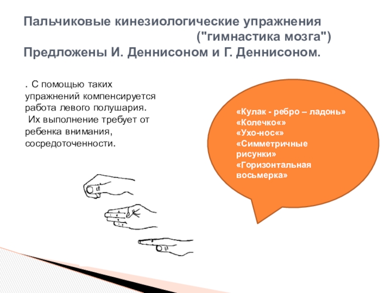 . С помощью таких упражнений компенсируется работа левого полушария.