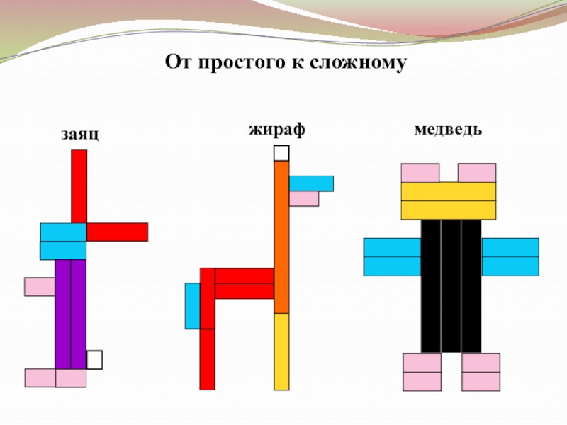 53. Выложите из палочек Кюизенера фигуру, и попросите ребенка сделать такую же (в дальнейшем свою фигуру можно прикрывать от ребенка листом бумаги).