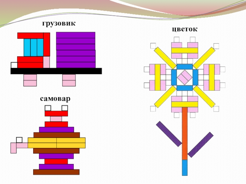 3. Можно выкладывать из палочек на плоскости дорожки, заборы, поезда, квадраты, прямоугольники, предметы мебели, разные домики, гаражи.