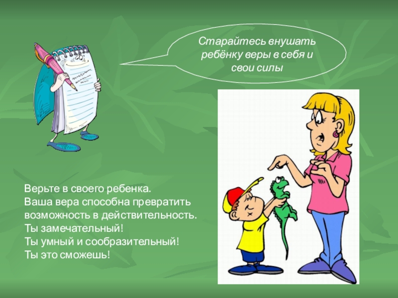 Внушайте ребенку, что он