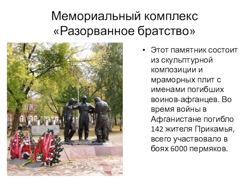 Слайд 24Мемориальный комплекс «Разорванное братство»