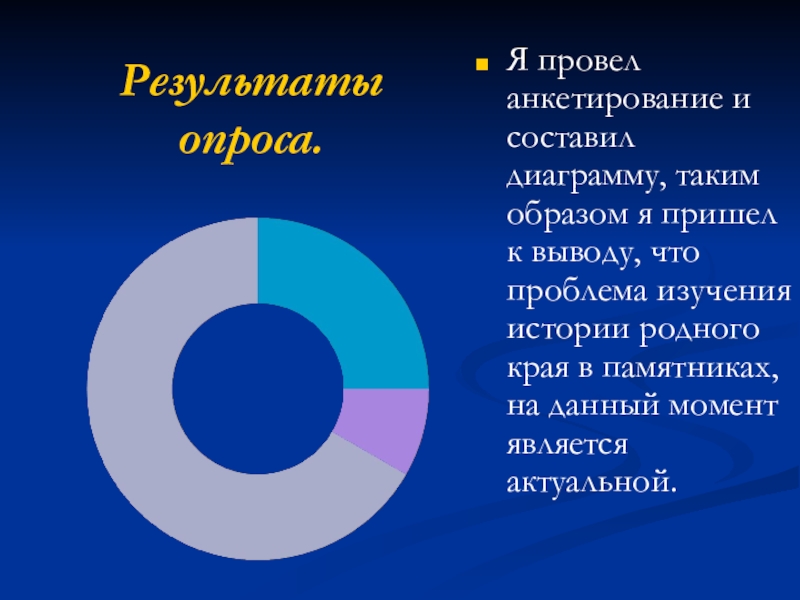 Результаты опроса.Я провел анкетирование и составил диаграмму, таким образом я пришел к выводу, что проблема изучения истории