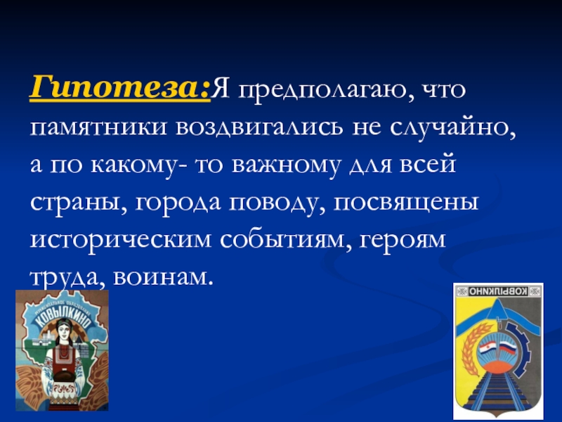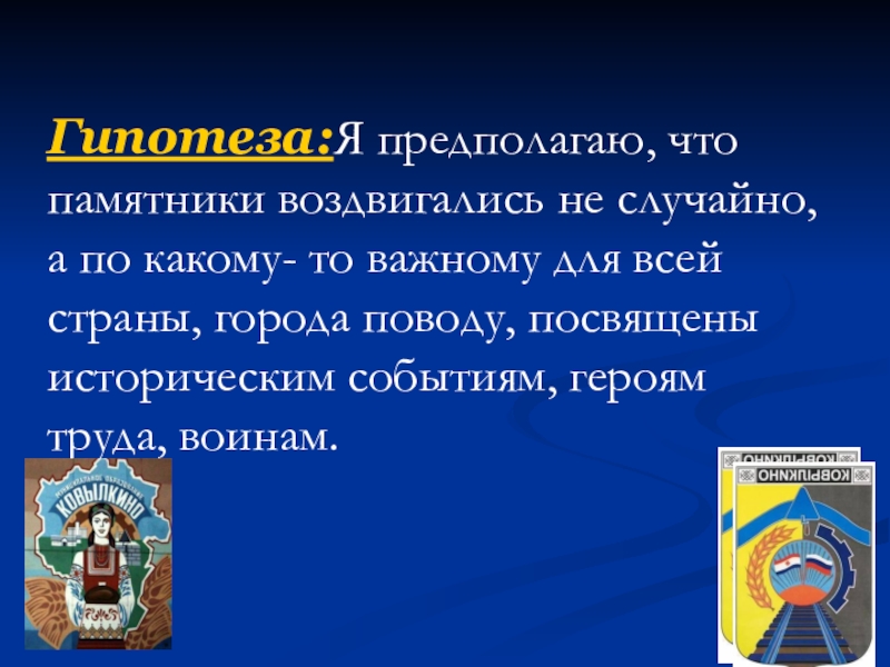 Слайд 3Гипотеза:Я предполагаю, что памятники воздвигались не случайно, а по какому- то
