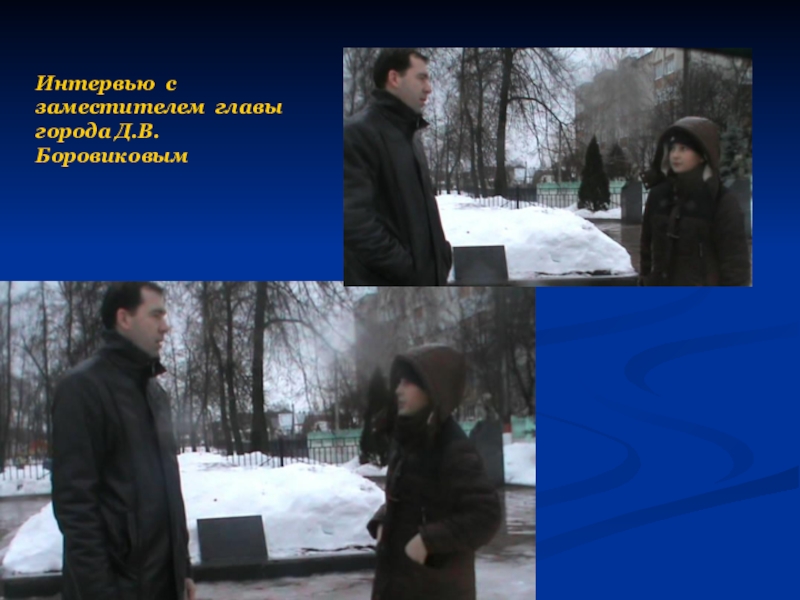 Слайд 18Интервью с заместителем главы города Д.В.Боровиковым