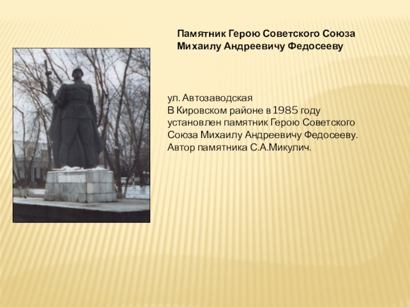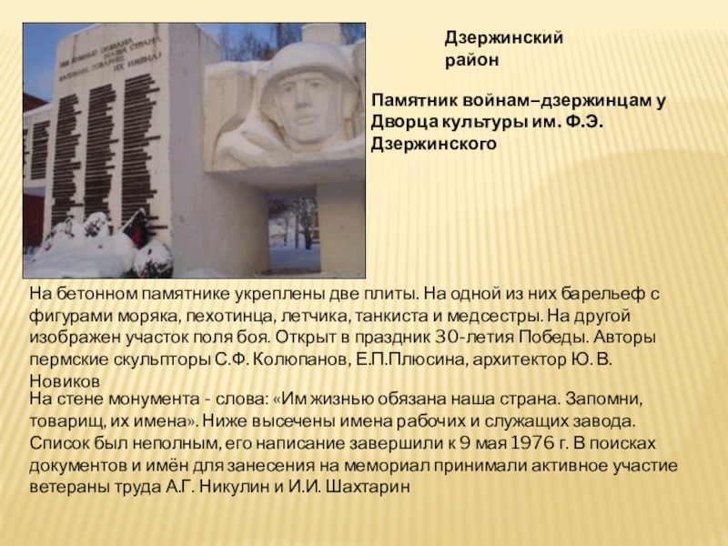 Памятник войнам–дзержинцам у Дворца культуры им. Ф.Э.Дзержинского