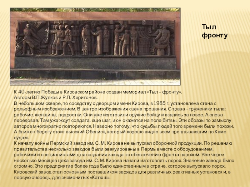 Памятник «Героям фронта и тыла от благодарных потомков» (скульптор В.М. Клыков)