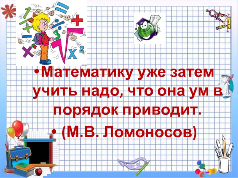 Математику уже затем учить надо, что она ум в порядок приводит. (М.В. Ломоносов)