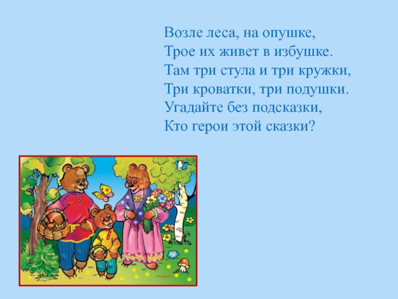 Трое их живет в избушке.