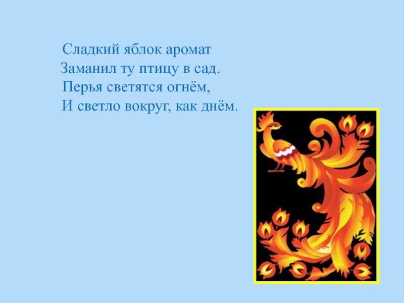 Заманил ту птицу в сад.