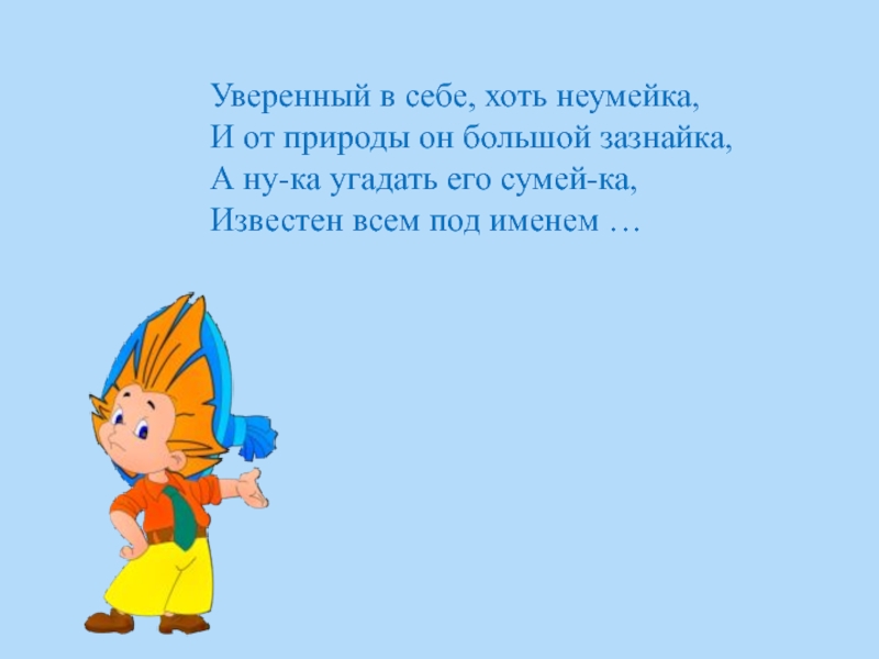 Слайд 11Уверенный в себе, хоть неумейка,