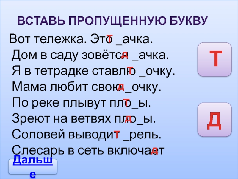 ВСТАВЬ ПРОПУЩЕННУЮ БУКВУ