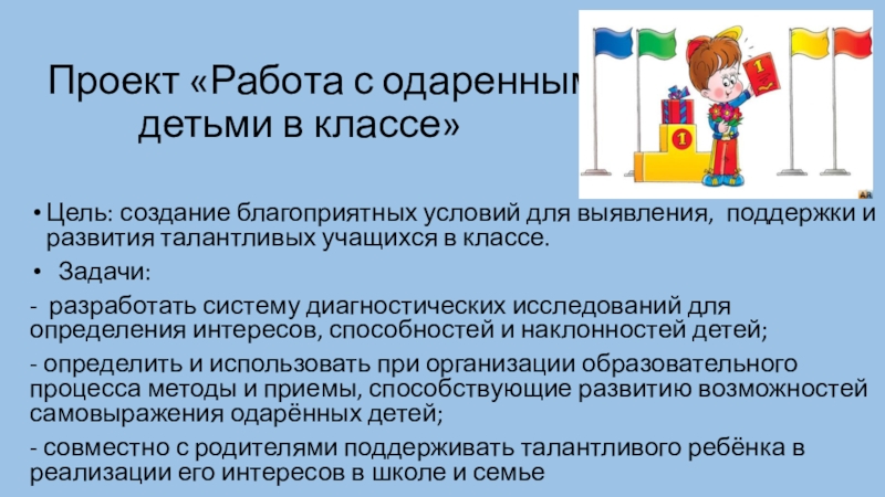 Цель: создание благоприятных условий для выявления, поддержки и развития талантливых учащихся в классе.