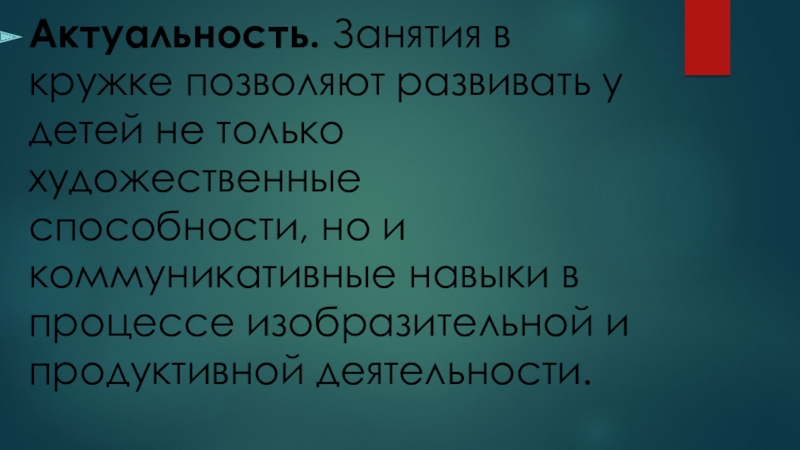 Слайд 5Актуальность. Занятия в кружке позволяют развивать у детей не только художественные способности,