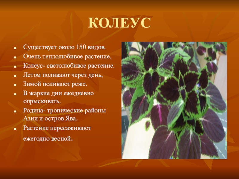 Колеус- светолюбивое растение.