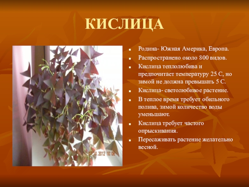 Кислица- светолюбивое растение.