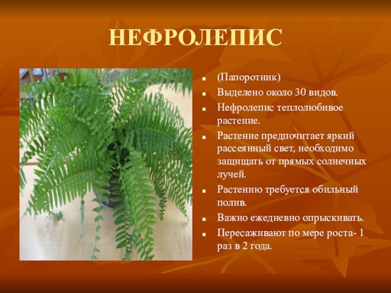 Нефролепис теплолюбивое растение.