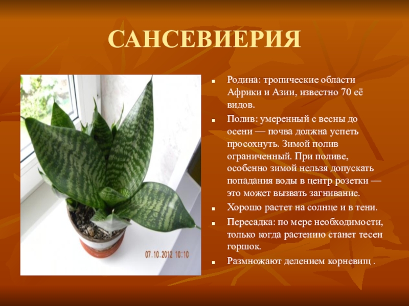 Слайд 14САНСЕВИЕРИЯ