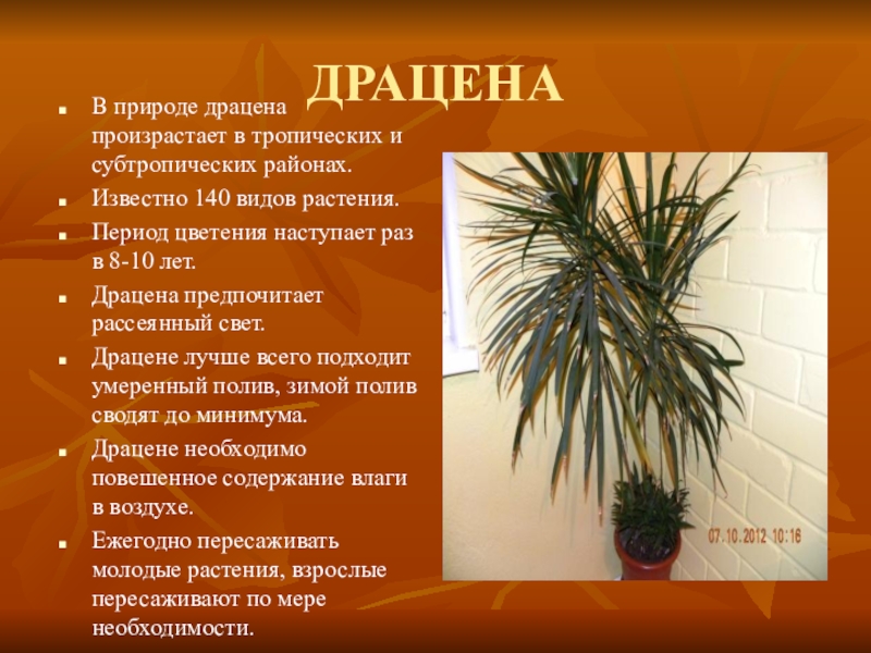 Драцене необходимо повешенное содержание влаги в воздухе.