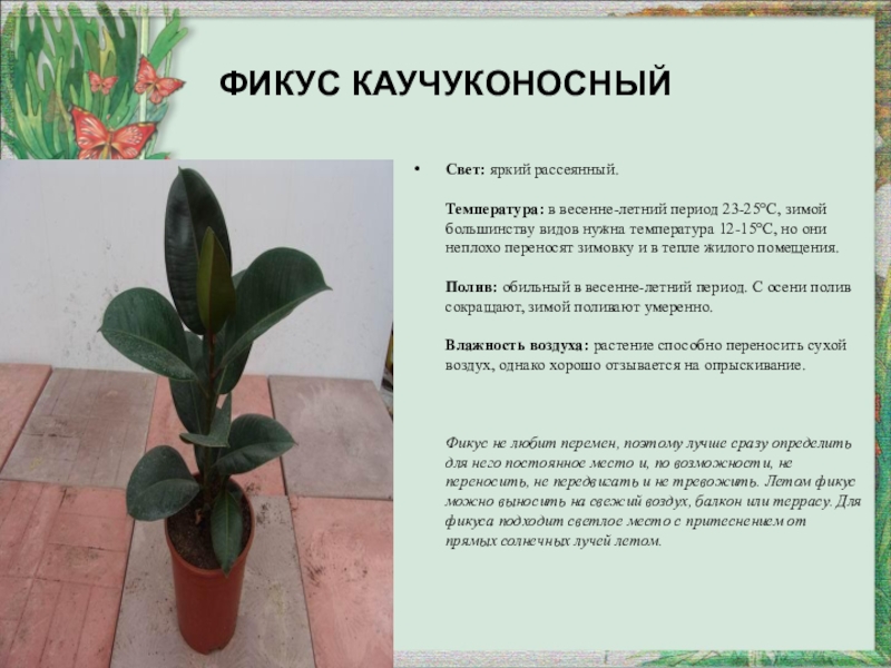 Слайд 9ФИКУС КАУЧУКОНОСНЫЙ