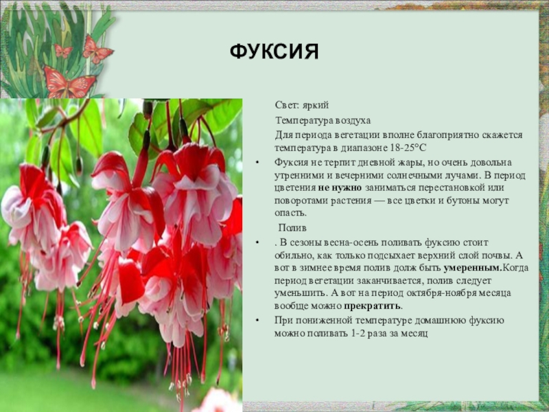 При пониженной температуре домашнюю фуксию можно поливать 1-2 раза за месяц