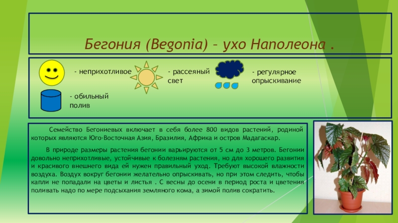 Слайд 11Бегония (Begonia) – ухо Наполеона .