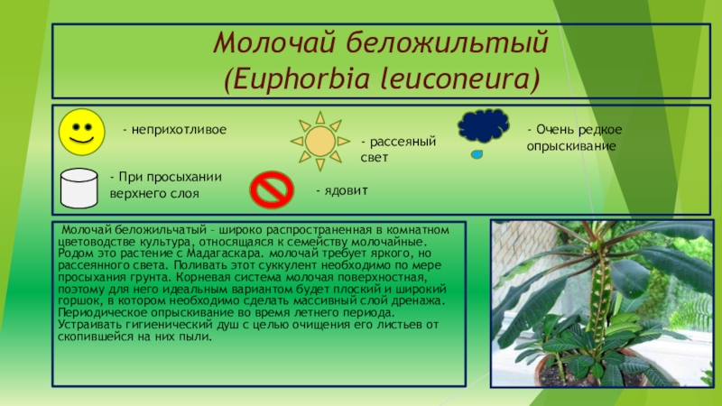 Молочай беложильчатый – широко распространенная в комнатном цветоводстве культура,