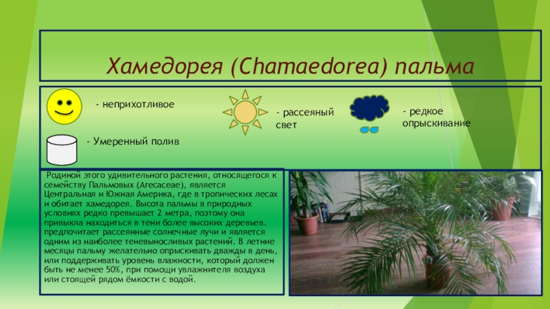 Слайд 38Хамедорея (Chamaedorea) пальма