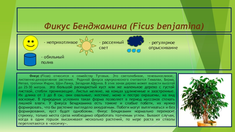 Слайд 13Фикус Бенджамина (Ficus benjamina)