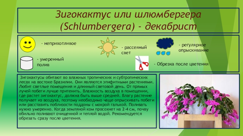 Слайд 25Зигокактус или шлюмбергера (Schlumbergera) - декабрист