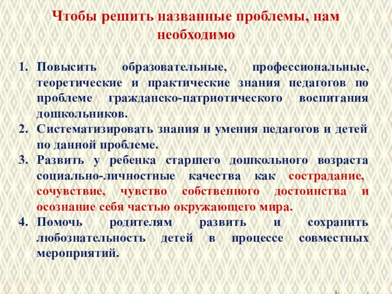 Слайд 6Чтобы решить названные проблемы, нам необходимо