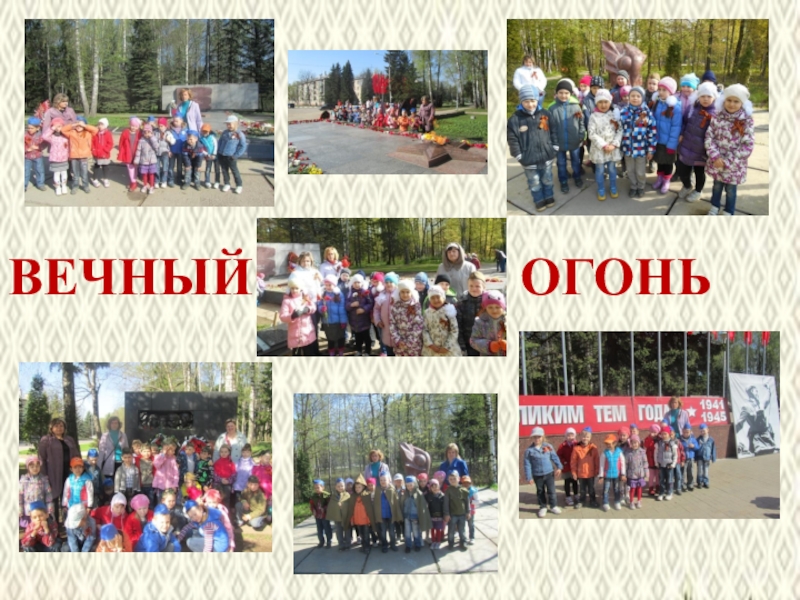 Экскурсии к памятным местам: наблюдение ритуальных моментов (возложение цветов к памятнику, минута молчания, встреча с участниками войны) Обязательно привлечь родителей.
