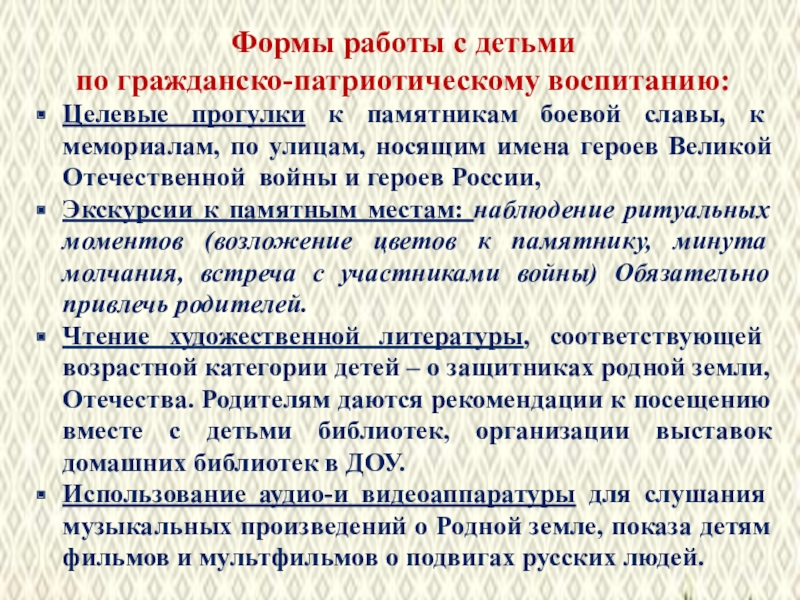 по гражданско-патриотическому воспитанию: