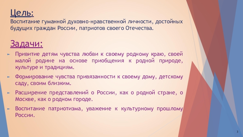 Привитие детям чувства любви к своему родному краю, своей малой родине на основе приобщения к родной природе, культуре и традициям.