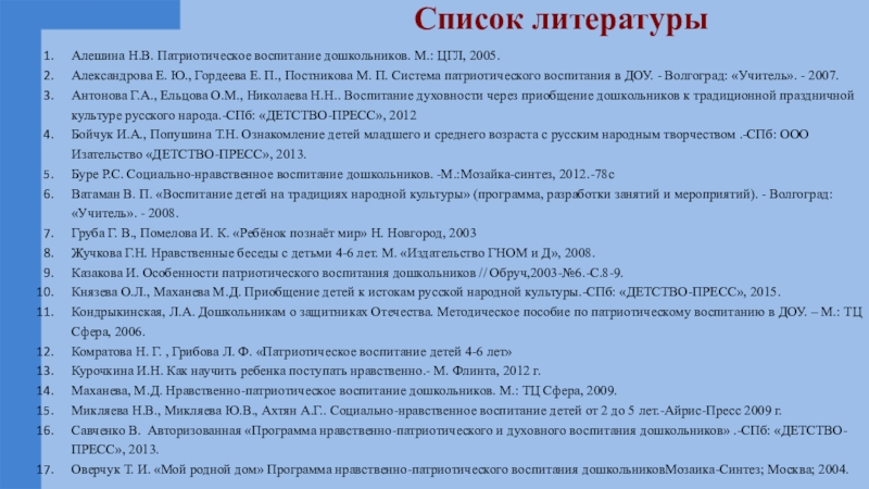 Изучение научно – педагогической литературы, передового педагогического опыта коллег по формированию патриотических чувств детей младшего дошкольного возраста