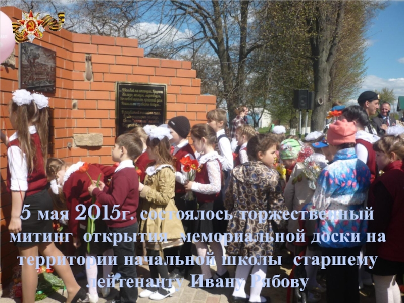5 мая 2015г. состоялось торжественный митинг открытия мемориальной доски на территории начальной школы старшему лейтенанту Ивану Рябову