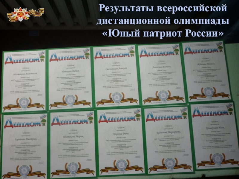 Результаты всероссийской дистанционной олимпиады «Юный патриот России»