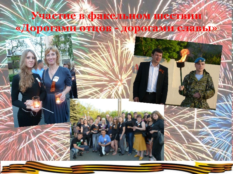 Слайд 11Участие в факельном шествии «Дорогами отцов - дорогами славы»