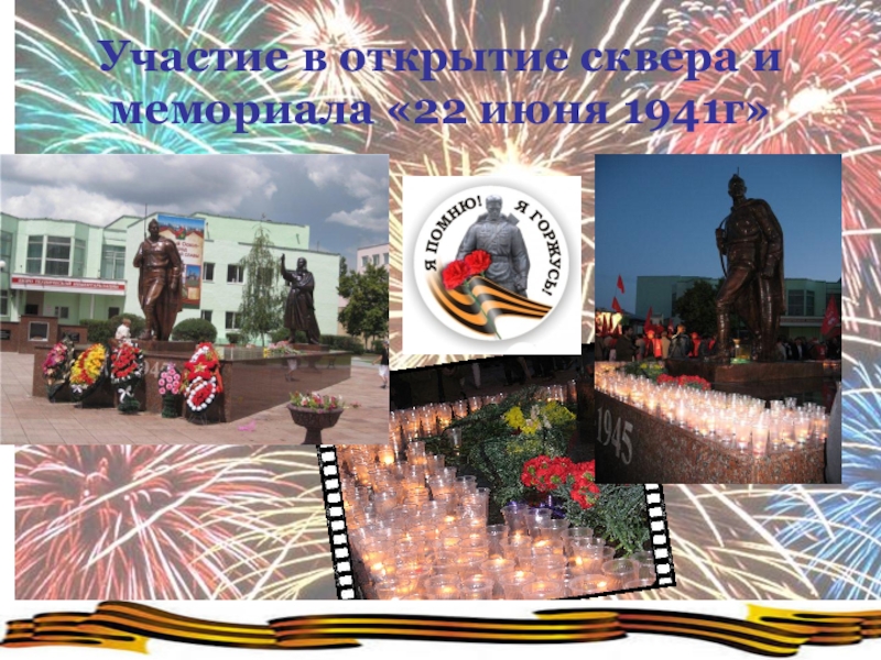 Слайд 12Участие в открытие сквера и мемориала «22 июня 1941г»
